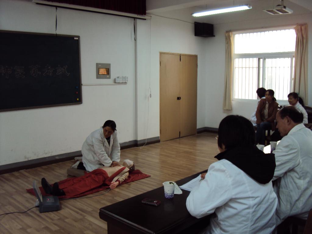 共有21位医护人员参加考试,事先制定考试方案,医院组织考试领导小组成员进行现场为参考人员打分,严格按照考核标准评判。结果21位参考人员全部心肺复苏成功、达标,有的同志只用了88秒钟就完成了全套动作。