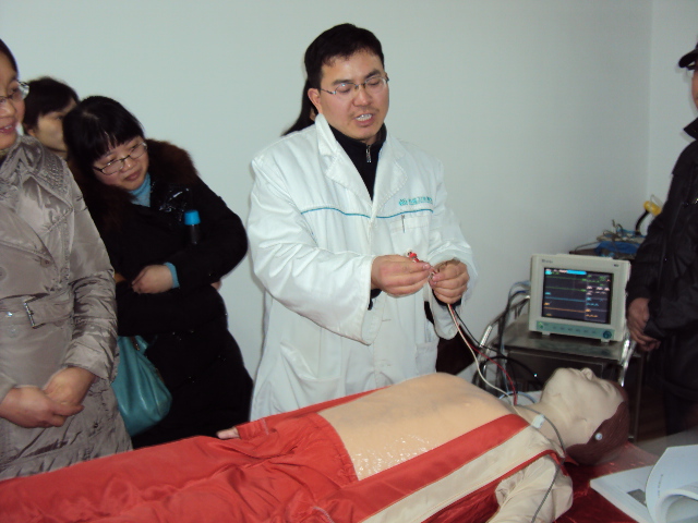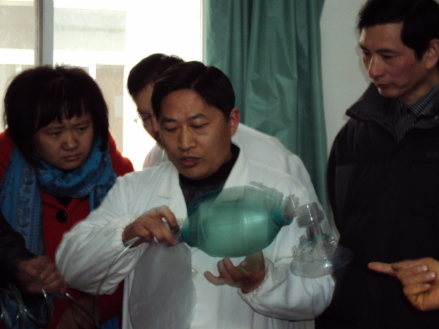 下午,我院组织全体医护人员进行医疗急救技能的培训。由蔡继忠、计世平、王素萍三位同志分别对简易呼吸器、心电监护仪、氧气设备的使用和相关知识进行全面讲解和操作演示。