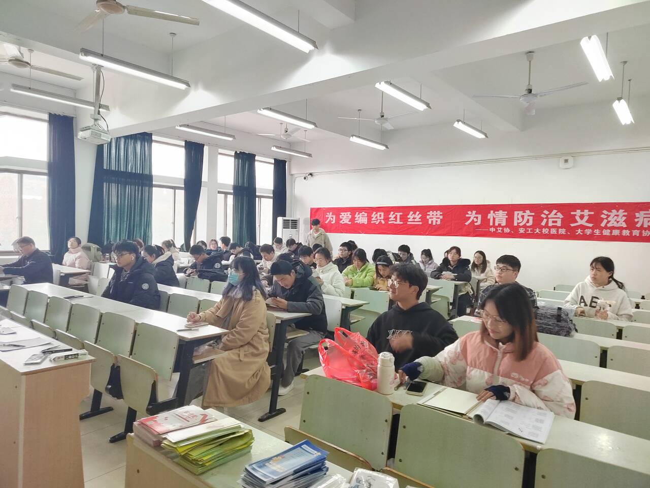 多形式、多渠道、多举措、多维度营造浓厚氛围。11月30日中午,校医院联合马鞍山市第四人民医院和花山区疾控分别在两校区开展艾滋病宣传、测血压、发放避孕套、免费做丙肝及HIV检测等义诊活动,发放HIV健康教育宣传单500余份。12月1日,校团委组织青协和大学生健康教育协会,在两校区开展 “凝聚社会力量,合力共抗艾滋”为主题的宣传活动,活动现场悬挂宣传横幅、张贴宣传画报,并发起点亮“红丝带”和签名活动,发放宣传资料1000余份。12月4日,邀请市疾控中心专家在两校区同时开展艾滋病防控知识讲座,发放宣传资料近200份。组织学生参加“2023年中艾协高校防艾基金项目效果评估问卷”和“携手医访APP(性病防治知识)”知识宣传活动。学校13名学生在马鞍山市疾控中心组织的2023年马鞍山市高校学生“防艾青春young”创意作品征集活动中获奖。