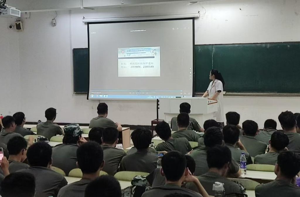 一堂专题宣讲课 在新生军训期间,利用全员国防安全教育,增设了医保政策宣讲、传染病防控知识讲座,开展了46个学时的新生健康教育全覆盖。让入学新生系统地了解医保的相关知识和使用方法,更好地维护自身权益。