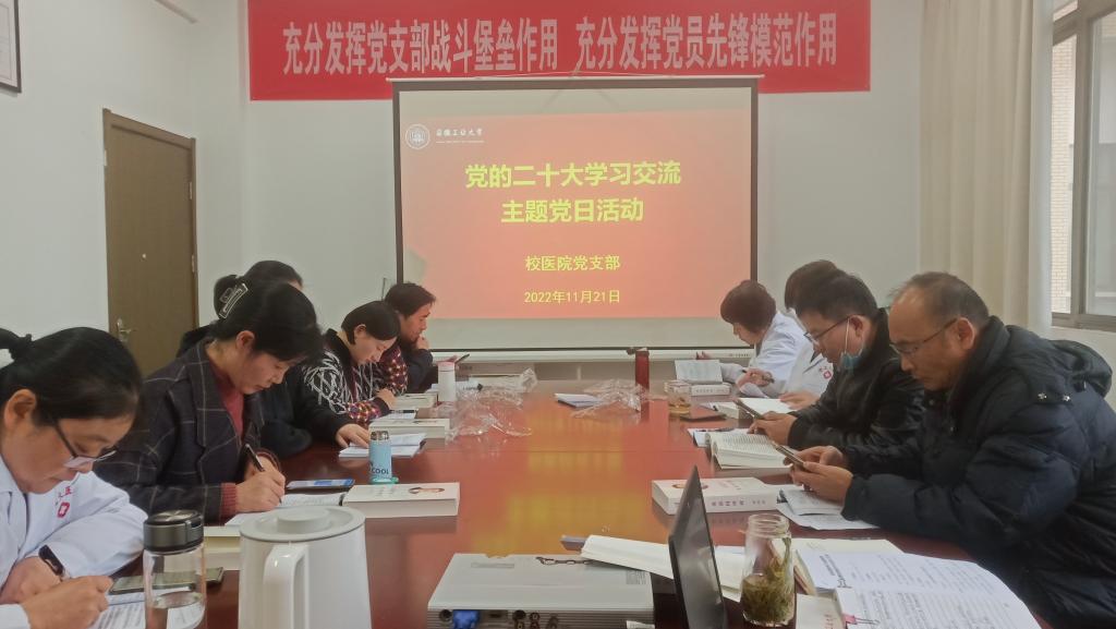 11月21日下午,校医院党支部召开党员大会,集中学习党的二十大精神并开展学习交流主题党日活动。支部全体党员参加了活动。