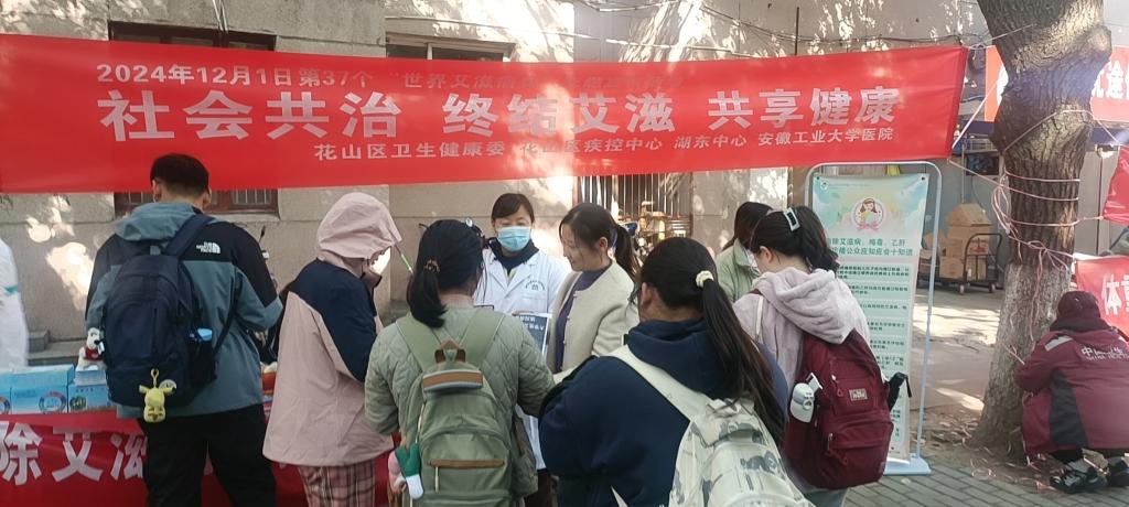 在秀山校区,支部组织党员通过拉横幅、出展板、散发宣传资料等方式开展艾滋病防治知识宣传,现场还设立了医疗咨询、医保咨询、测量血压等项目,同时通过师生QQ群、各类宣传栏等多渠道宣传艾滋病防治知识。在佳山校区,校医院同各部门、单位、个人行动起来,与花山区卫健委、花山区疾控中心、湖东路卫生服务中心联合开展宣传活动。指导组织大学生健康教育协会在两校区开展艾滋病防治核心知识讲座,形成合力,了解艾滋,终结艾滋,共同担负起防艾责任,共建健康中国,共享健康成果。